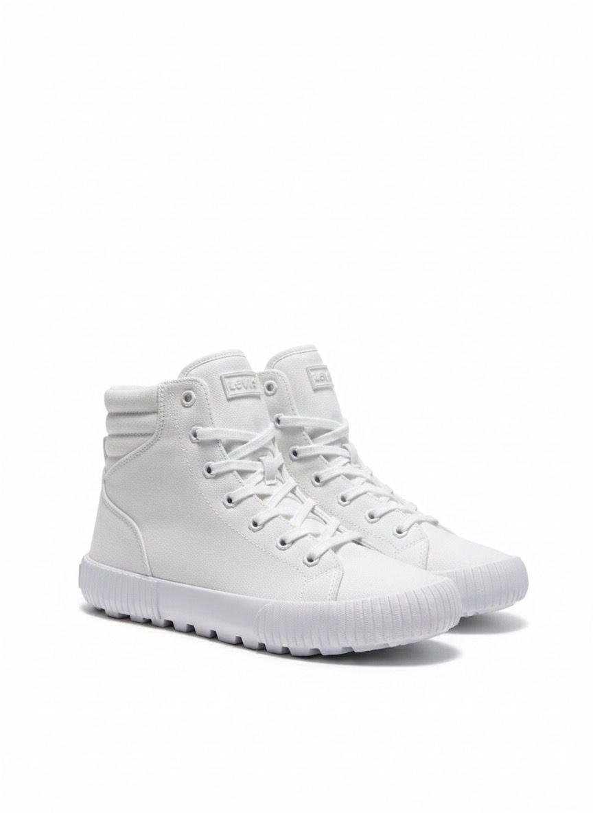 Eleva tu look casual con estos icónicos Levi’s Drive Hi. Su diseño de bota alta en color blanco total ofrece una estética limpia y minimalista que combina perfectamente con jeans, joggers o pantalones en drill. El detalle distintivo de este modelo es su suela de goma dentada (lug sole), que no solo aporta un toque moderno y robusto, sino que mejora la tracción. disponible en talla 40