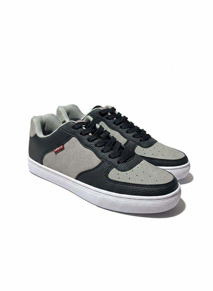 Zapatillas casuales Levi’s de estilo urbano con diseño moderno en combinación de colores negro y gris. Fabricadas en material sintético tipo cuero con paneles perforados que brindan mejor ventilación. Cuentan con cierre de cordones, suela de goma resistente y el icónico logo rojo de la marca en el lateral. Disponible en talla 40